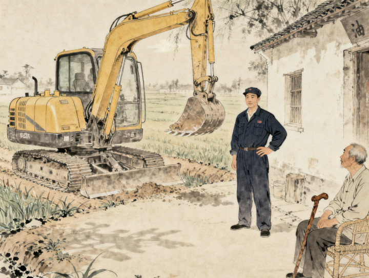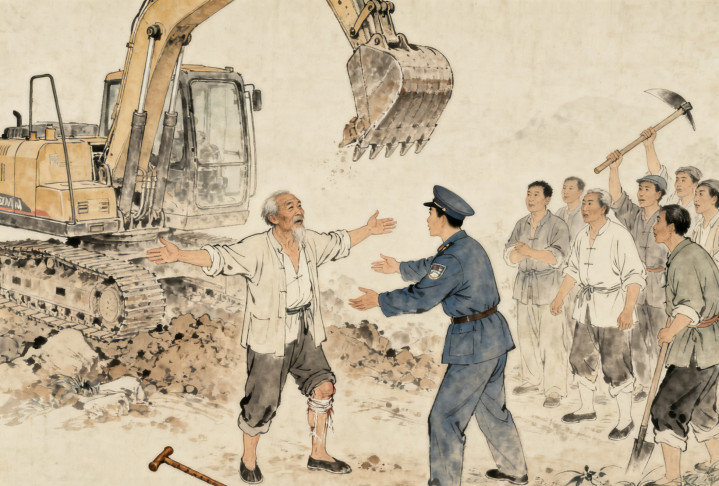 第二天一早,施工队就开始挖油坊旁边的土。老周急了,拄着拐冲过去,拦在挖掘机前面:“不能挖!再挖就挖到管道了!”